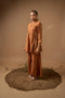 The “Kaahi” co-ord set is an elegant and contemporary fusion of style and tradition, featuring a vibrant green top and matching green pants. The top boasts a flattering V-neckline, with full sleeves that add an air of sophistication. A tie-around waist accentuates the silhouette, offering both comfort and definition. The set’s design is elevated with intricate red and gold borders woven into the fabric, creating a stunning contrast against the rich green base. Perfect for festive occasions or casual chic outings, the Kaahi co-ord set seamlessly blends modern fashion with timeless detailing.